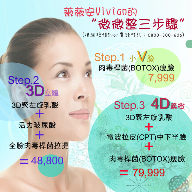 Vivian開心的說:「近期我的美容秘方就是3D聚左旋乳酸與電波拉提,這兩項醫學美容科技真的令我超滿意!電波能更緊緻我的皮膚,而3D聚左旋乳酸除了可以填補我凹陷的部位,更能增加皮膚裡的膠原蛋白,讓皮膚隨時呈現飽滿的彈力!當然我不奢望回到18歲那樣的青春年華,我的目標是維持現在這樣的狀態,每年為自己存點青春資本,當別人隨著時間年齡老化時,我則是『越活越年輕』的狀態囉!!!」